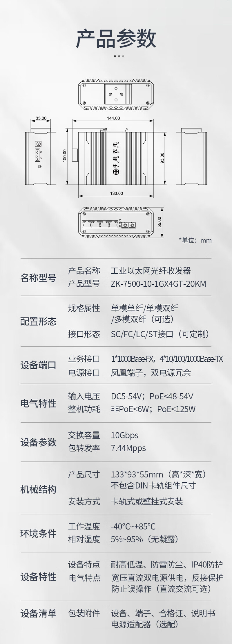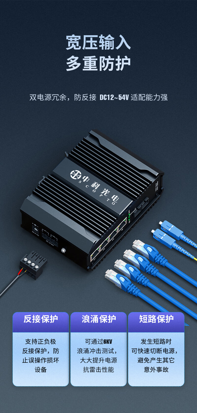 中科光電 工業(yè)級光纖收發(fā)器 千兆單模雙纖1光4電轉(zhuǎn)換器以太網(wǎng)交換機(jī)24V48V導(dǎo)軌式SC接口