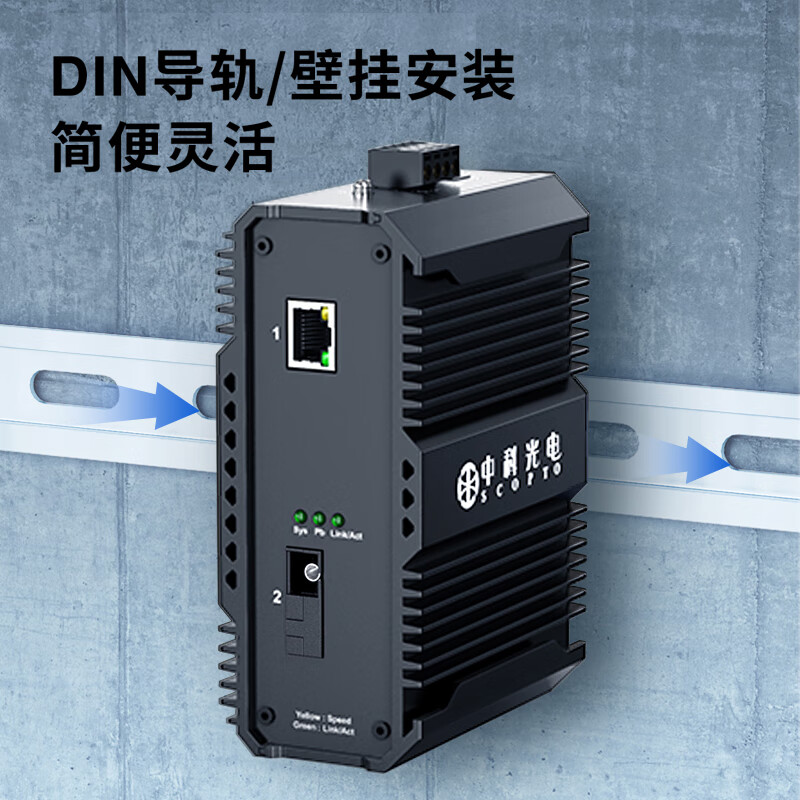 中科光電 工業(yè)級(jí)光纖收發(fā)器 百兆單模單纖1光1電轉(zhuǎn)換器以太網(wǎng)交換機(jī)24V48V導(dǎo)軌式SC接口