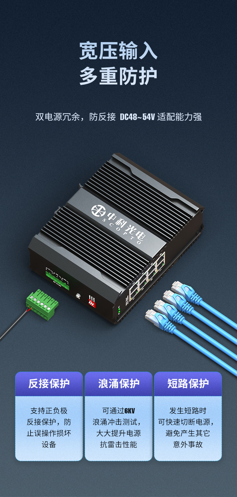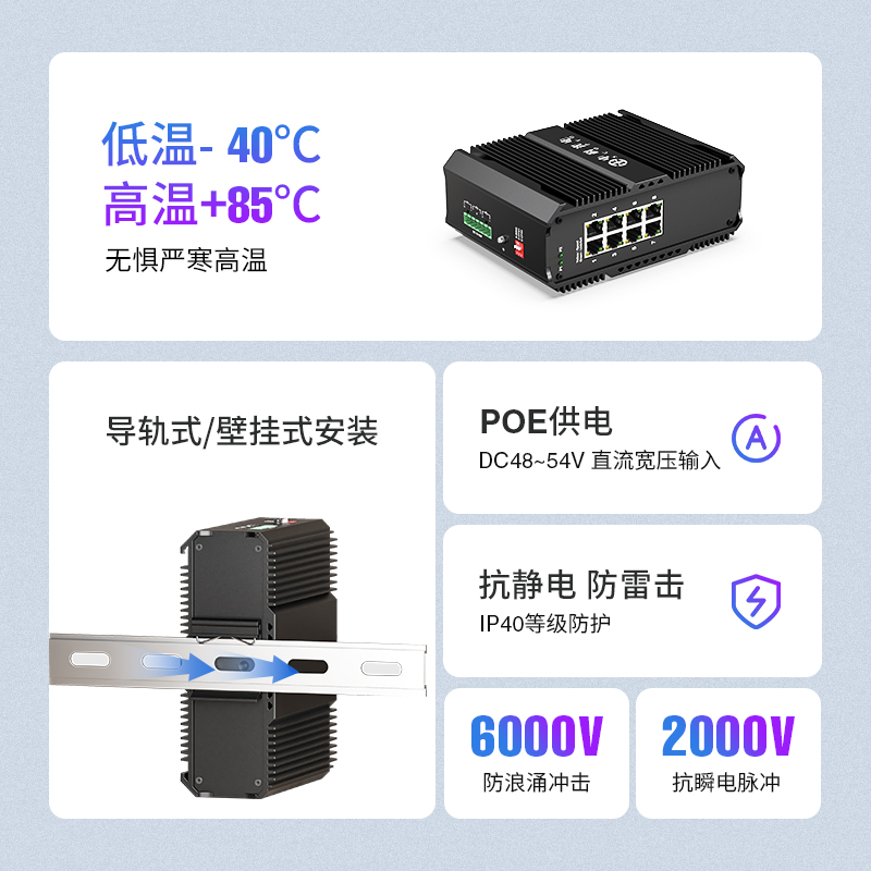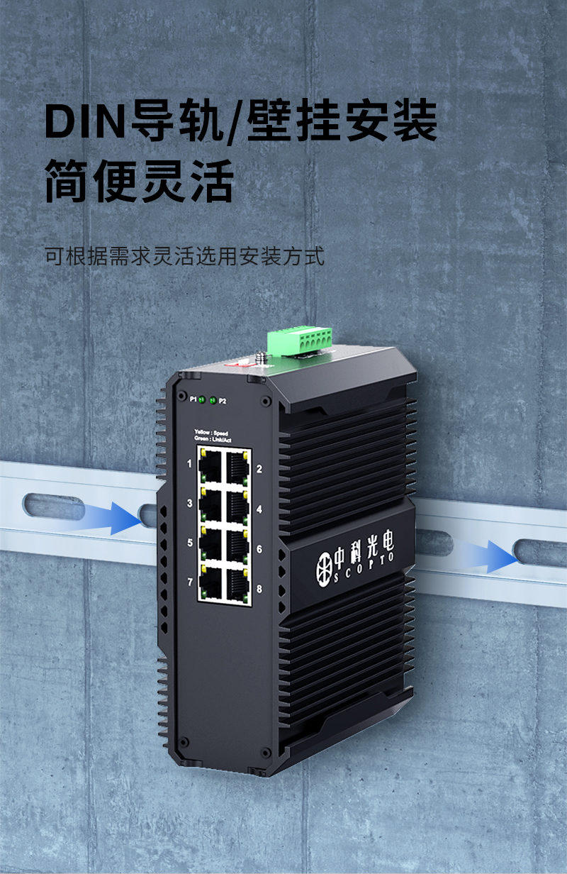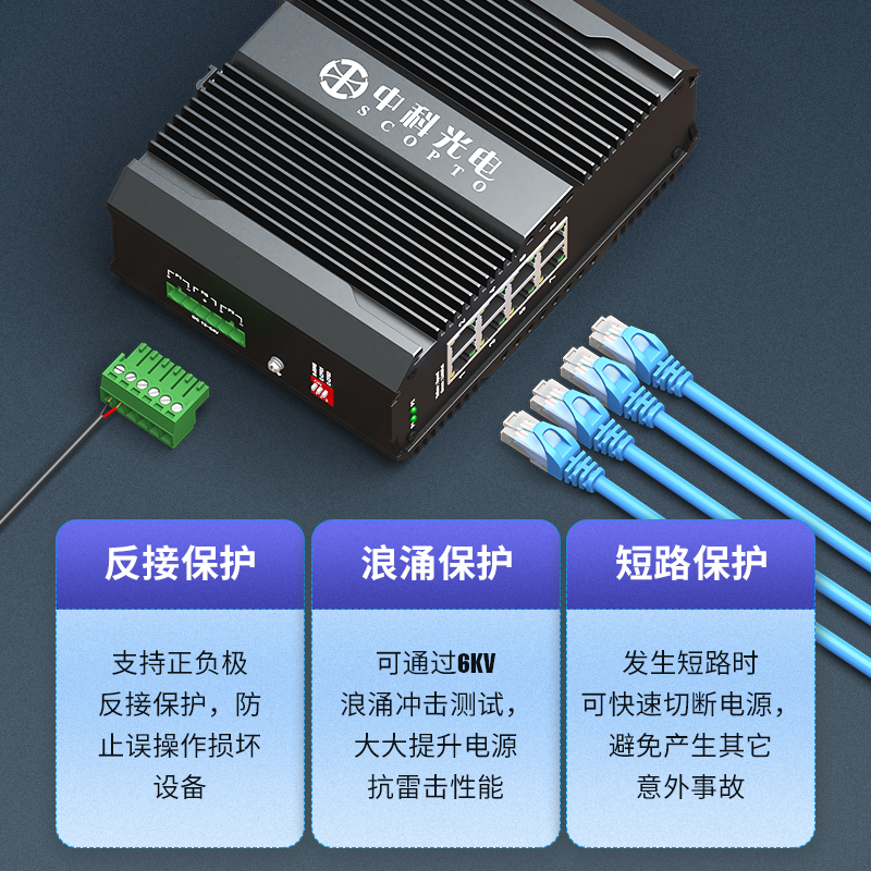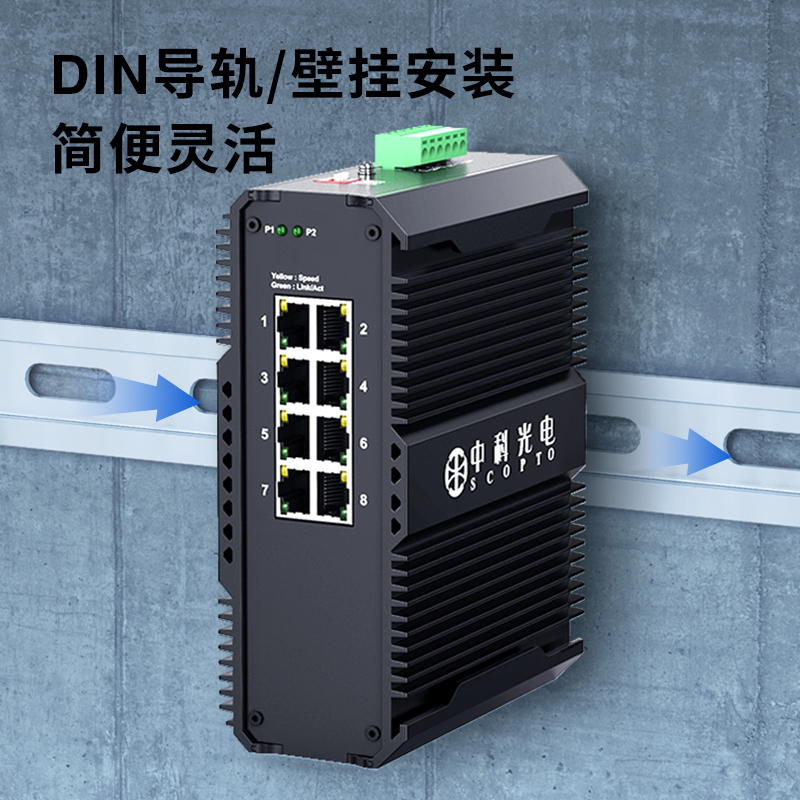 中科光電 工業(yè)交換機8口PoE交換機千兆 安防監(jiān)控工業(yè)級以太網(wǎng)絡(luò)攝像頭網(wǎng)線供電導(dǎo)軌壁掛式 ZK-7500-15-8GP
