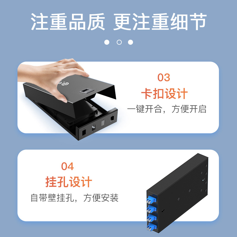 中科光電 光纖終端盒4口 8芯光纖熔接盒 光纜接續(xù)盒 接線熔纖盒 LC多模滿配尾纖法蘭 壁掛式 ZK-GXH-8LC-MM