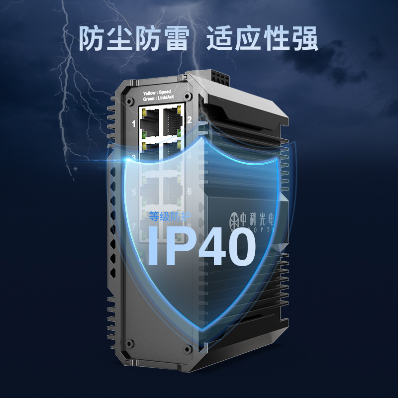 中科光電 工業(yè)級8口千兆交換機(jī) 安防監(jiān)控工業(yè)以太網(wǎng)交換機(jī) 12V/24V/48V供電導(dǎo)軌壁掛式安裝 ZK-7500-15-8GT
