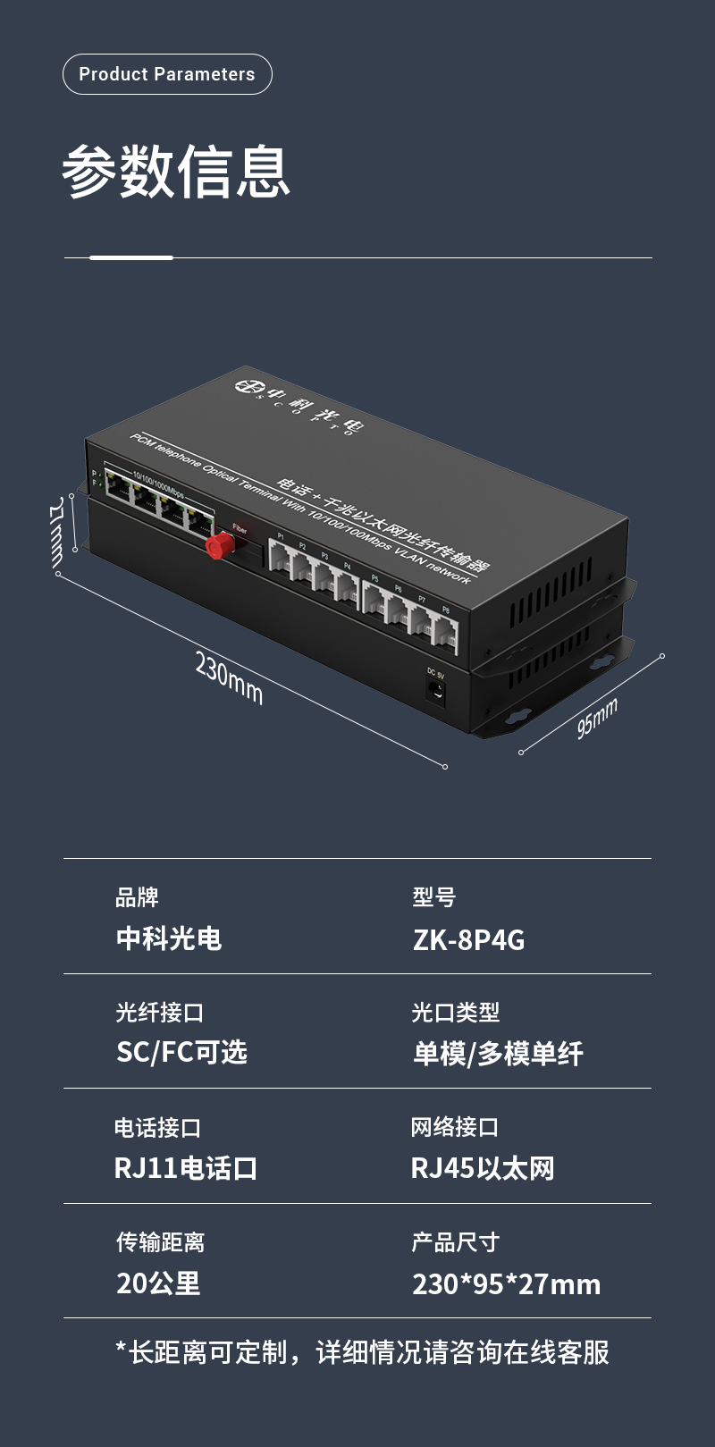 中科光電 電話光端機(jī)8路電話+4路千兆網(wǎng)絡(luò) 電話光纖收發(fā)器 PCM語音電話轉(zhuǎn)光纖延長器轉(zhuǎn)換器 ZK-8P4G
